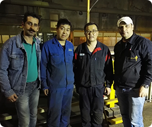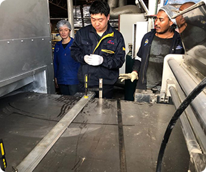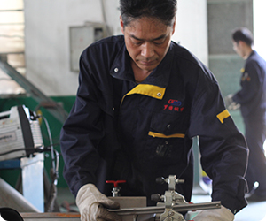 出差的售后服务员工在客户现场,用熟练的技术和一丝不苟的严谨态度进行安装、维修工作。